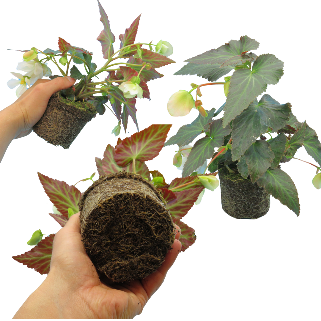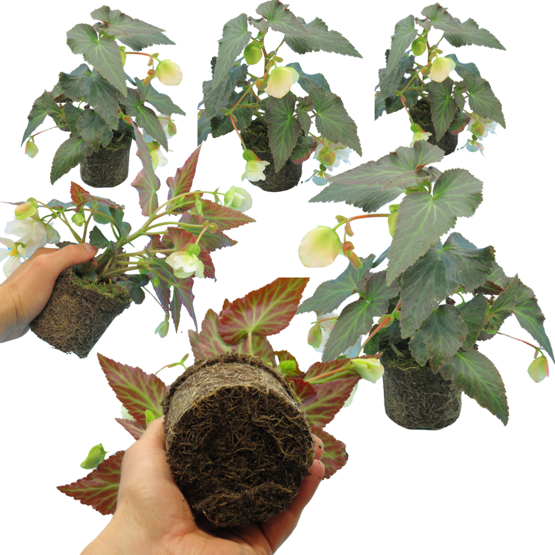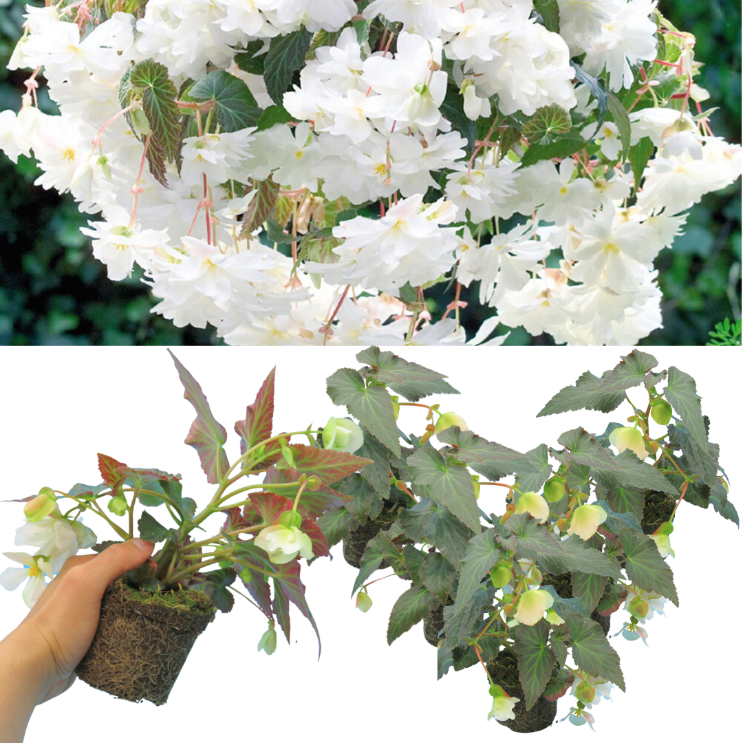 Begonia 'Illumination White' brings a pure, ethereal beauty to any shaded garden corner. It’s popular for its large, fully double blooms, with densely layered, ruffled petals in a creamy white hue—gently kissed with the faintest touch of soft yellow at the centre—& framed by lush, dark green foliage. With its trailing habit, it spills elegantly over the edges of hanging baskets, window boxes & containers, forming a vibrant, flowing canopy of colour all summer long.