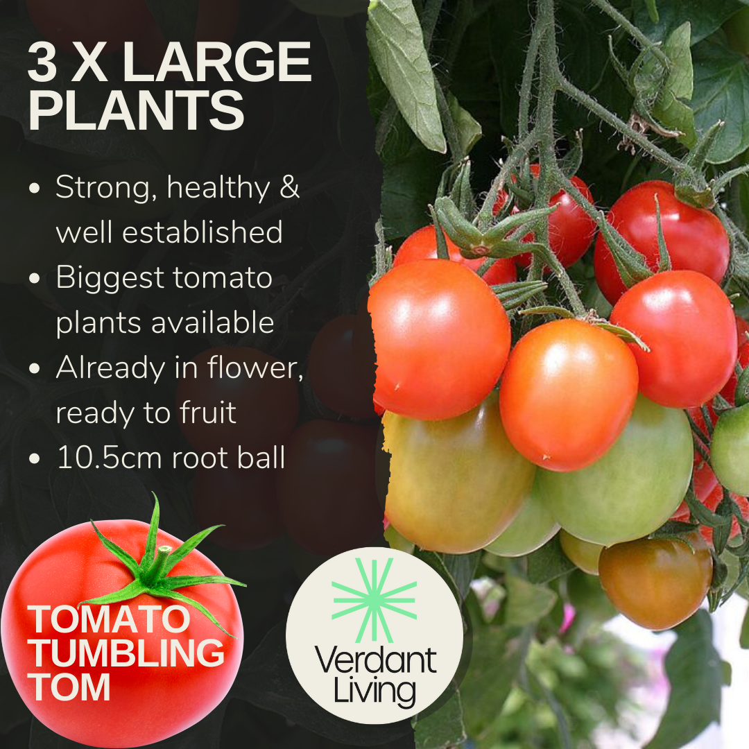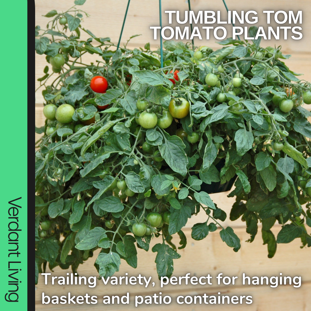 Elevate your garden with our Large Tumbling Tom Trailing Type Tomato Plants! Perfect for hanging baskets, containers, and window boxes, this variety produces an abundance of sweet, flavorful red or yellow cherry tomatoes. Thriving in full sun. Grown in PEAT FREE compost and delivered in PLASTIC FREE packaging. Straight from our Yorkshire nursery, fresher and bigger than supermarket or garden centre options. Tasty home grown salads with Tumbling Tom!