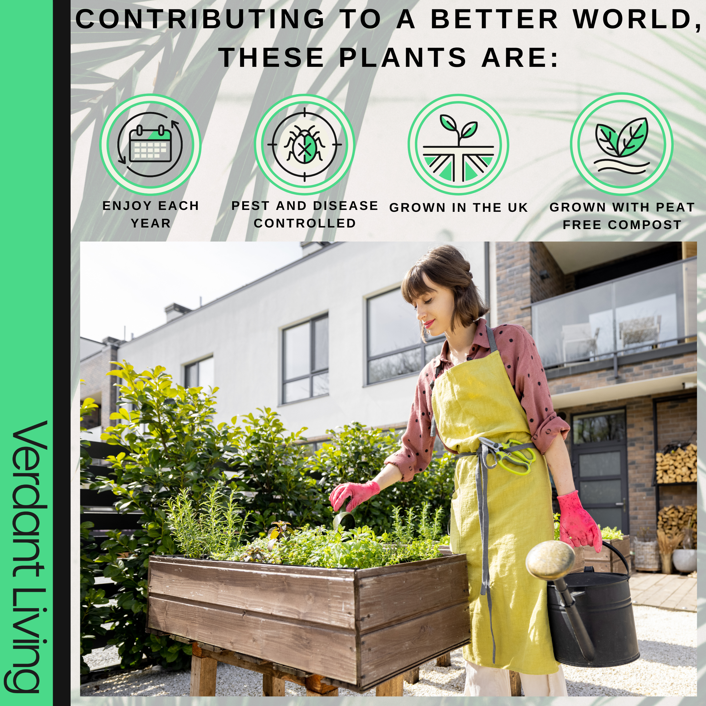 This mix of 1 x Rosemary, 1 x Thyme and 1 x Sage Plant has be curated by our expert growers to provide herbs when cooking in the colder months. These three herbs will match the change of pallet, giving warmth and comfort through until spring next year. Growing your own herbs can be both satisfying and can offer a culinary delight which will taste better than supermarket bought herbs. Supplied as large plants ready to snip and use.