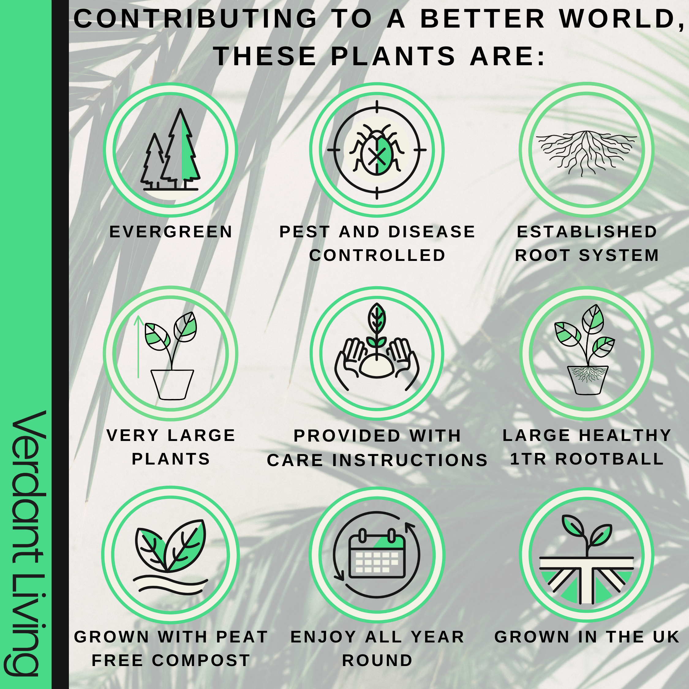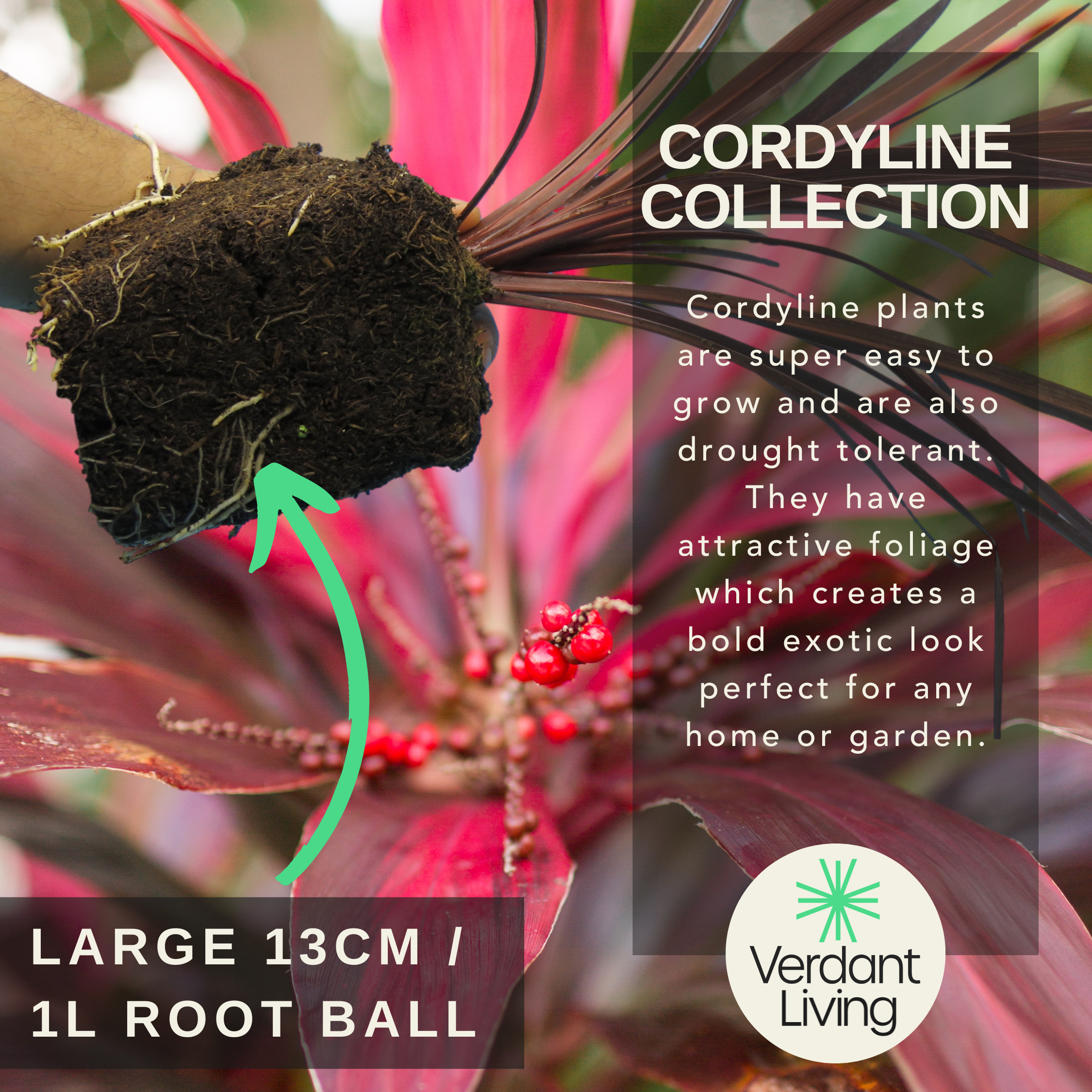 These well established, attractive architectural shaped plants have have spiky leaves, giving an exotic appearance which can slowly grow into a tropical tree like form. Originating from New Zealand, also known as cabbage palms, they keep their coloured leaves all year round. A perfect perennial looking attractive indoor or outside. Often planted as a centerpiece in patio pots and containers.