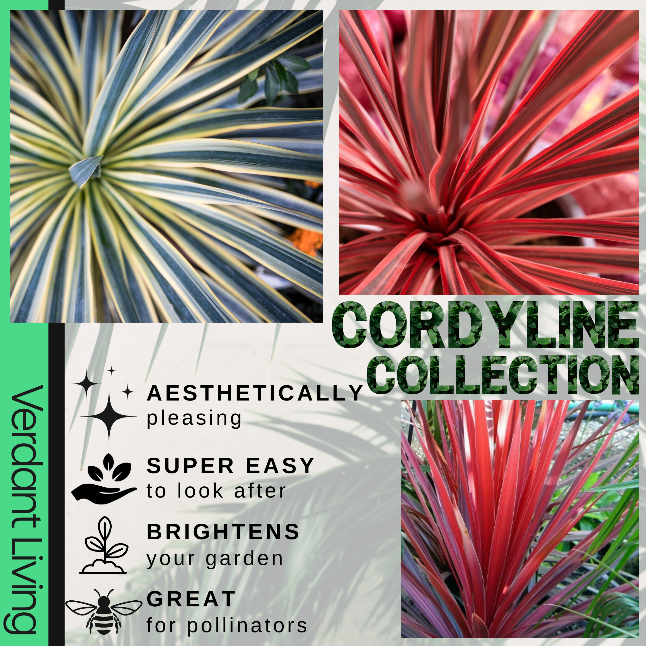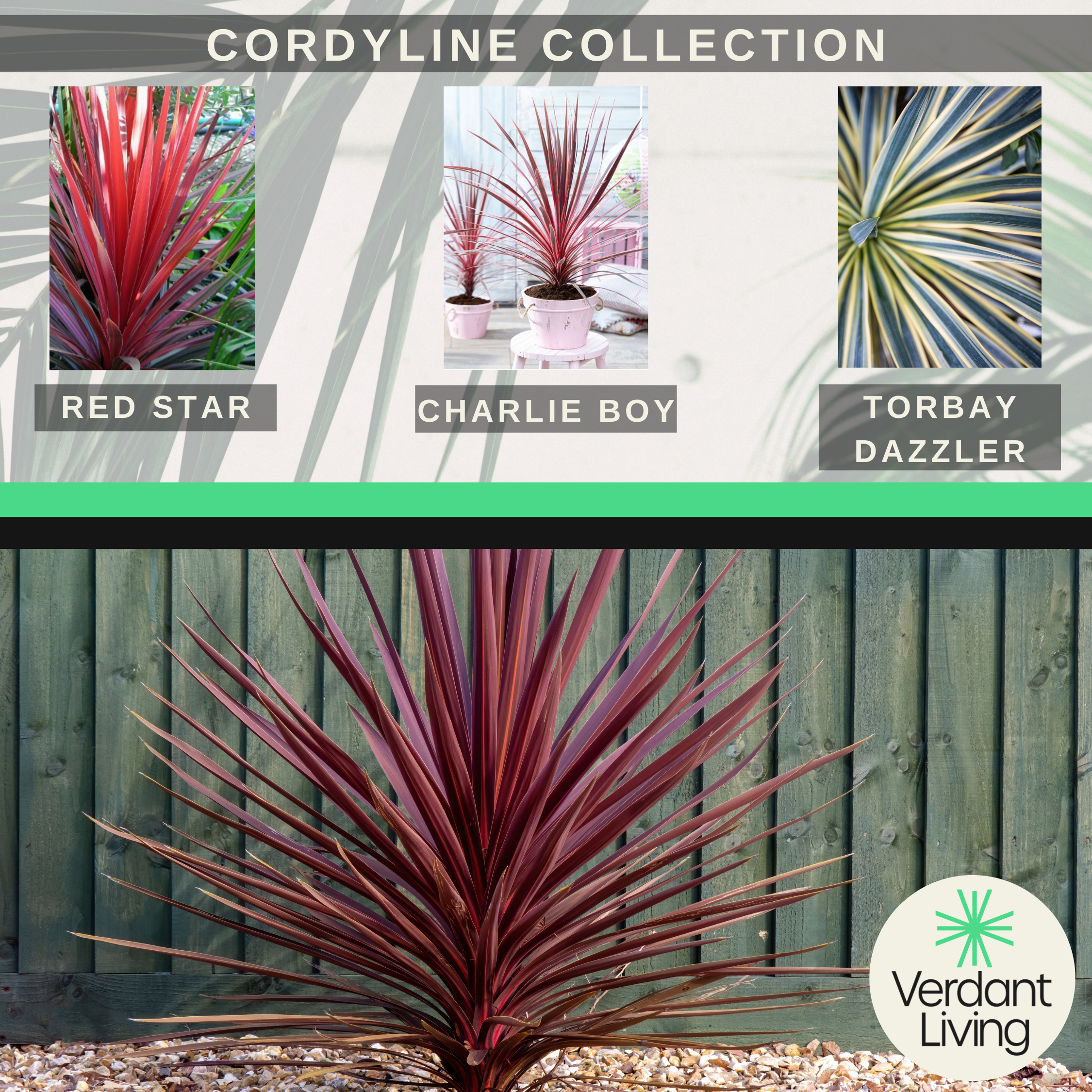 Cordyline Collection - Red Star, Charlie Boy, Torbay Dazzler