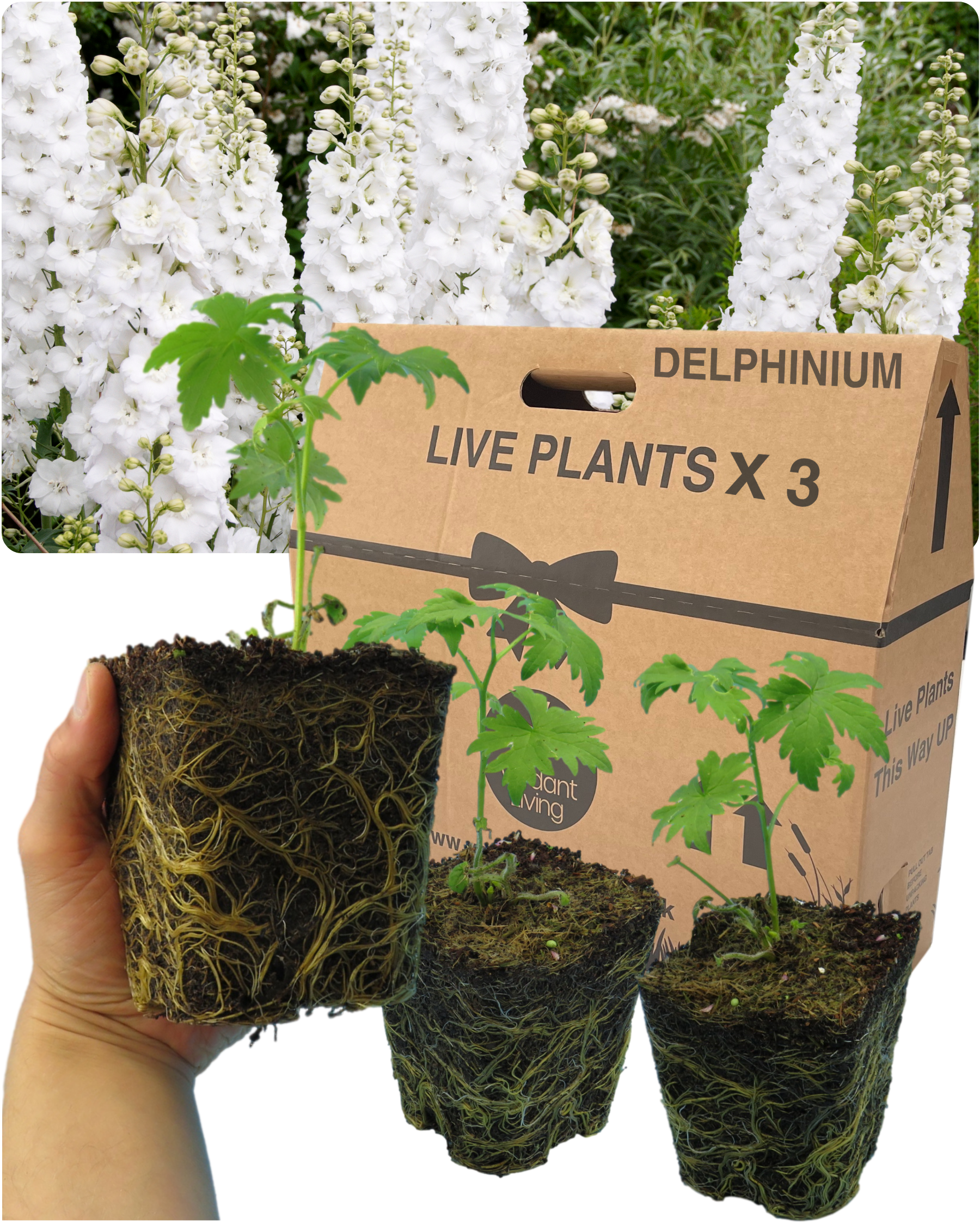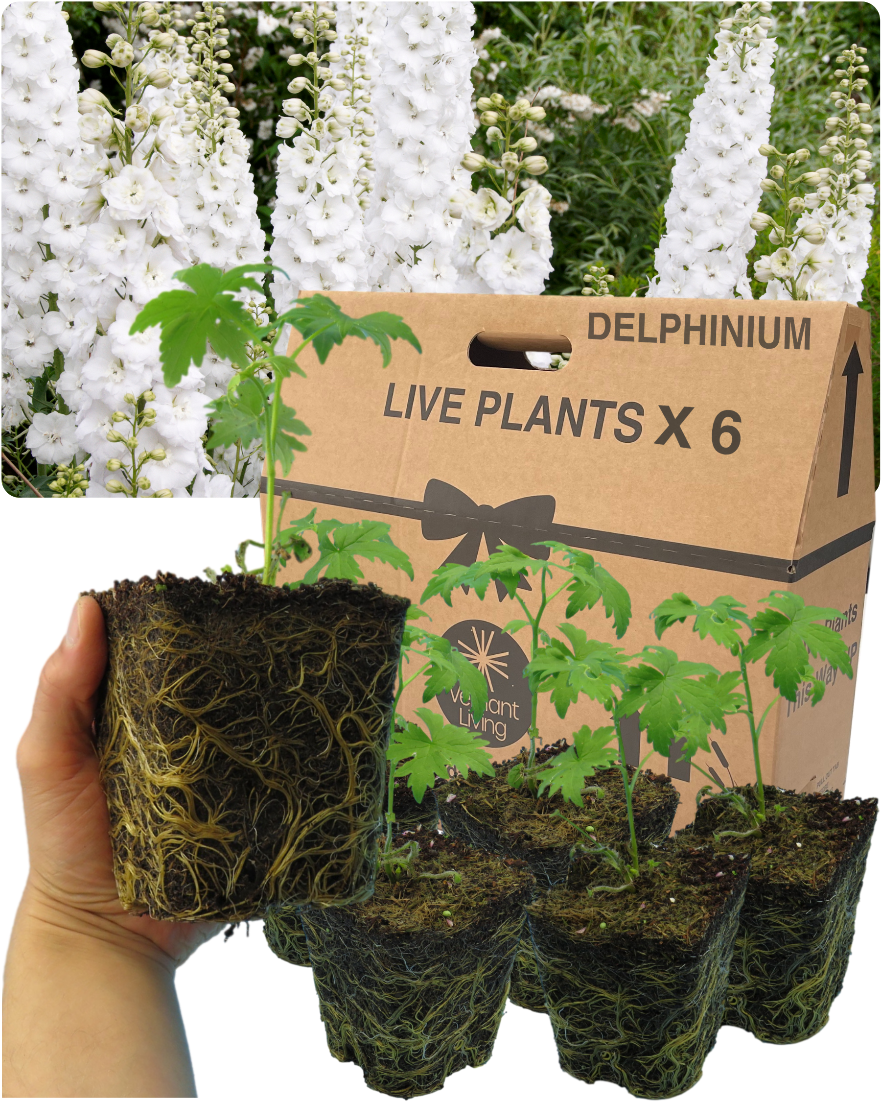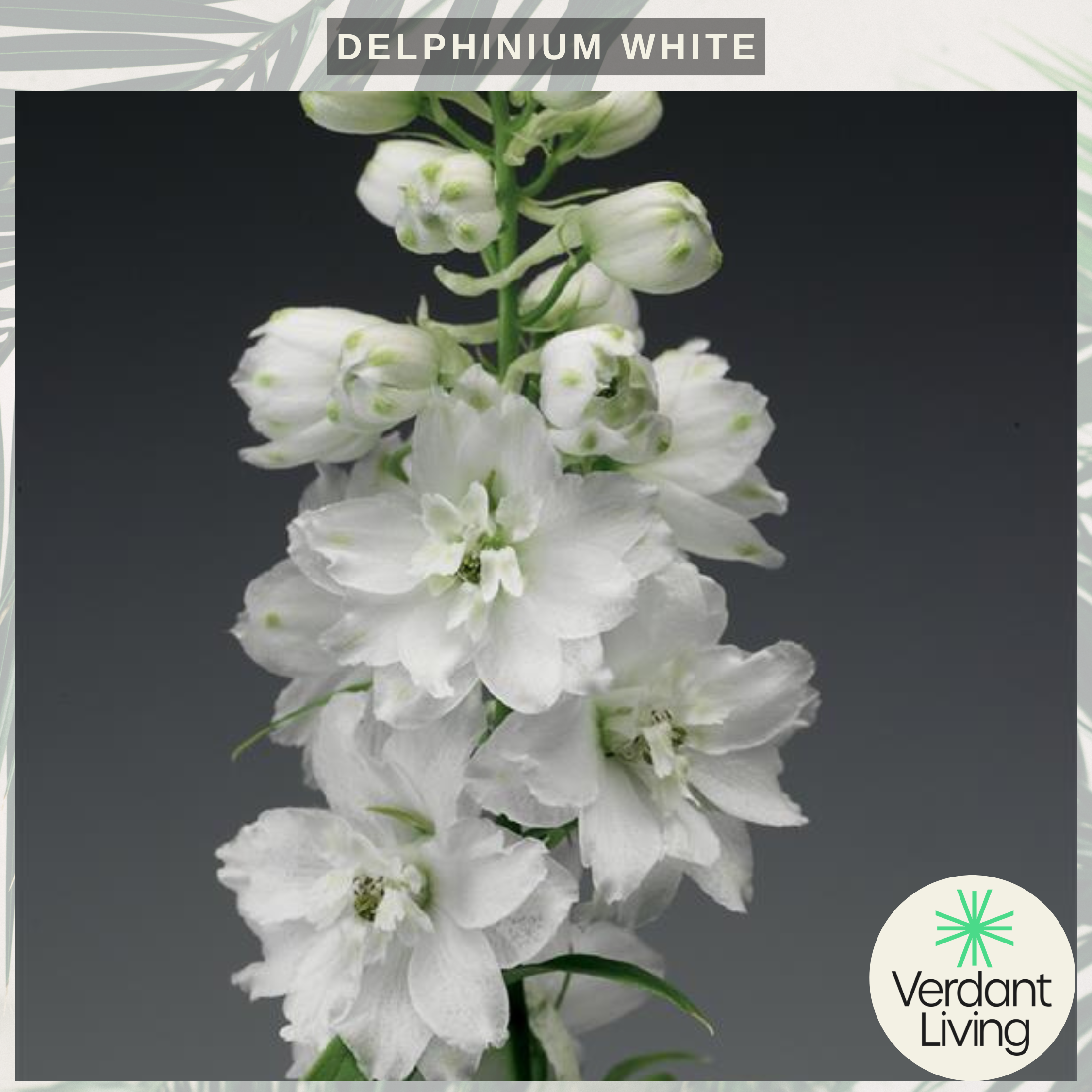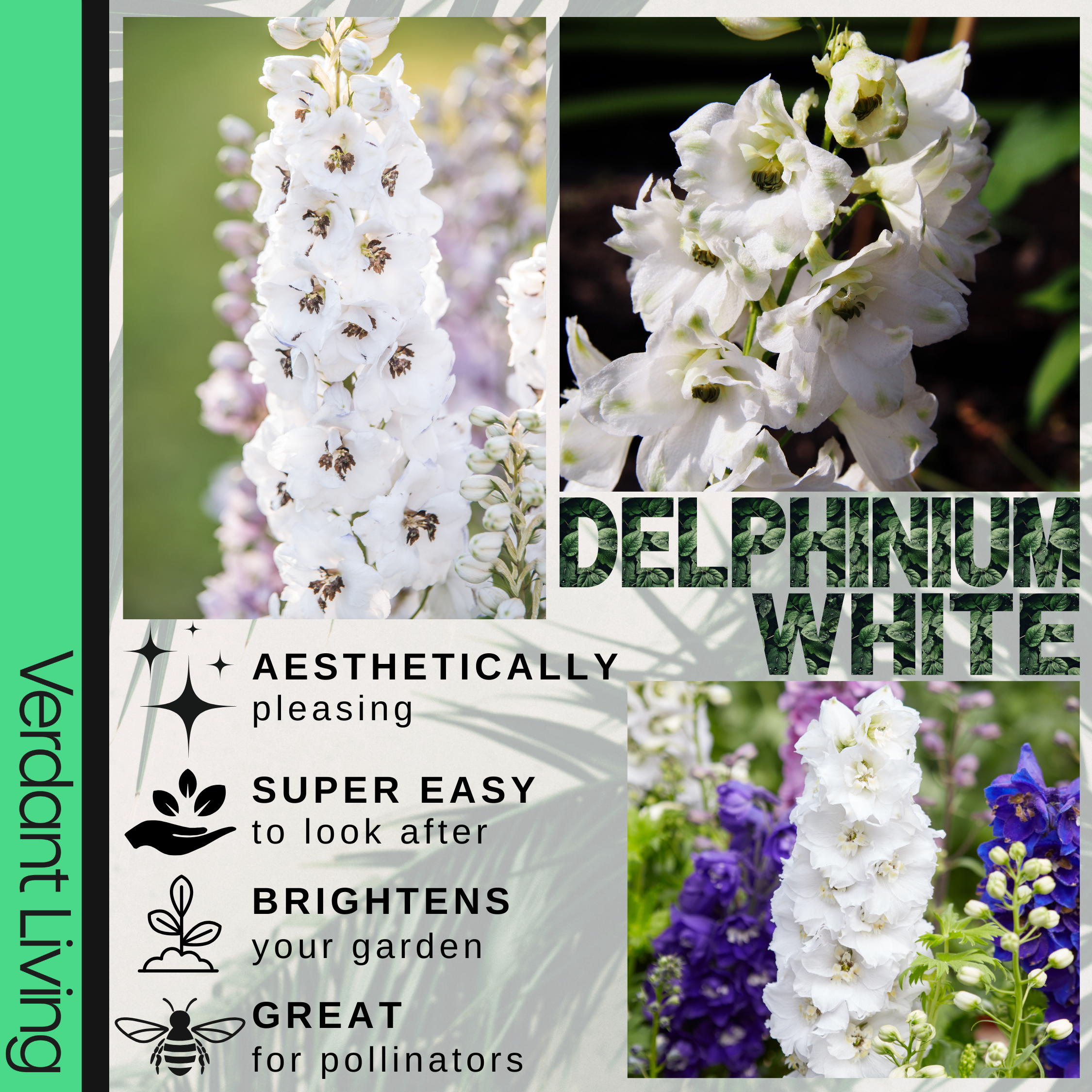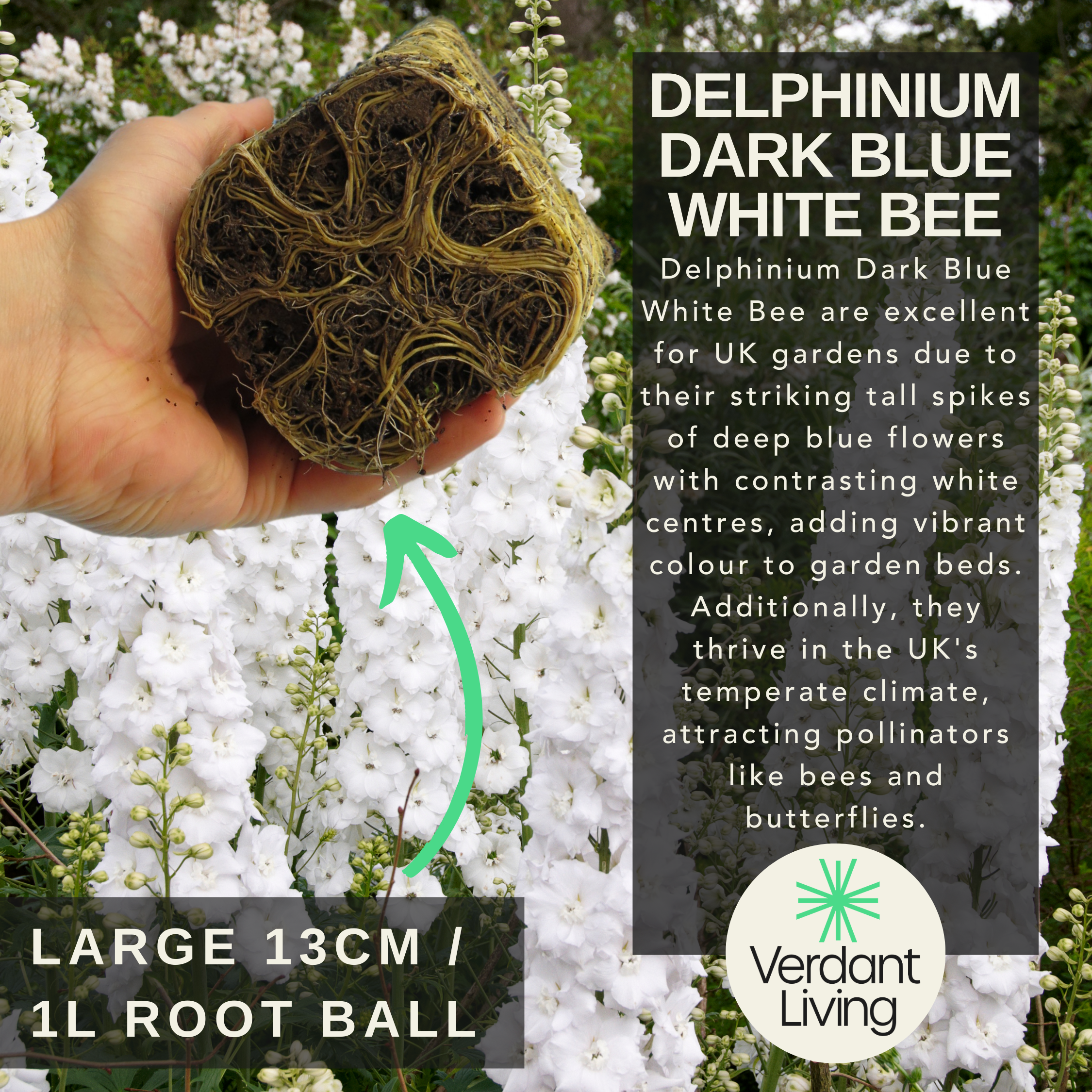 Our Large Delphinium Plants in an enchanting White shade will turn your garden into a vibrant paradise. These towering beauties are perfect for adding a splash of color and elegance to your borders. Imagine your garden graced with these stunning blooms, each spike adorned with captivating sky blue petals and a charming white center – it's a sight that will leave your neighbours in awe!