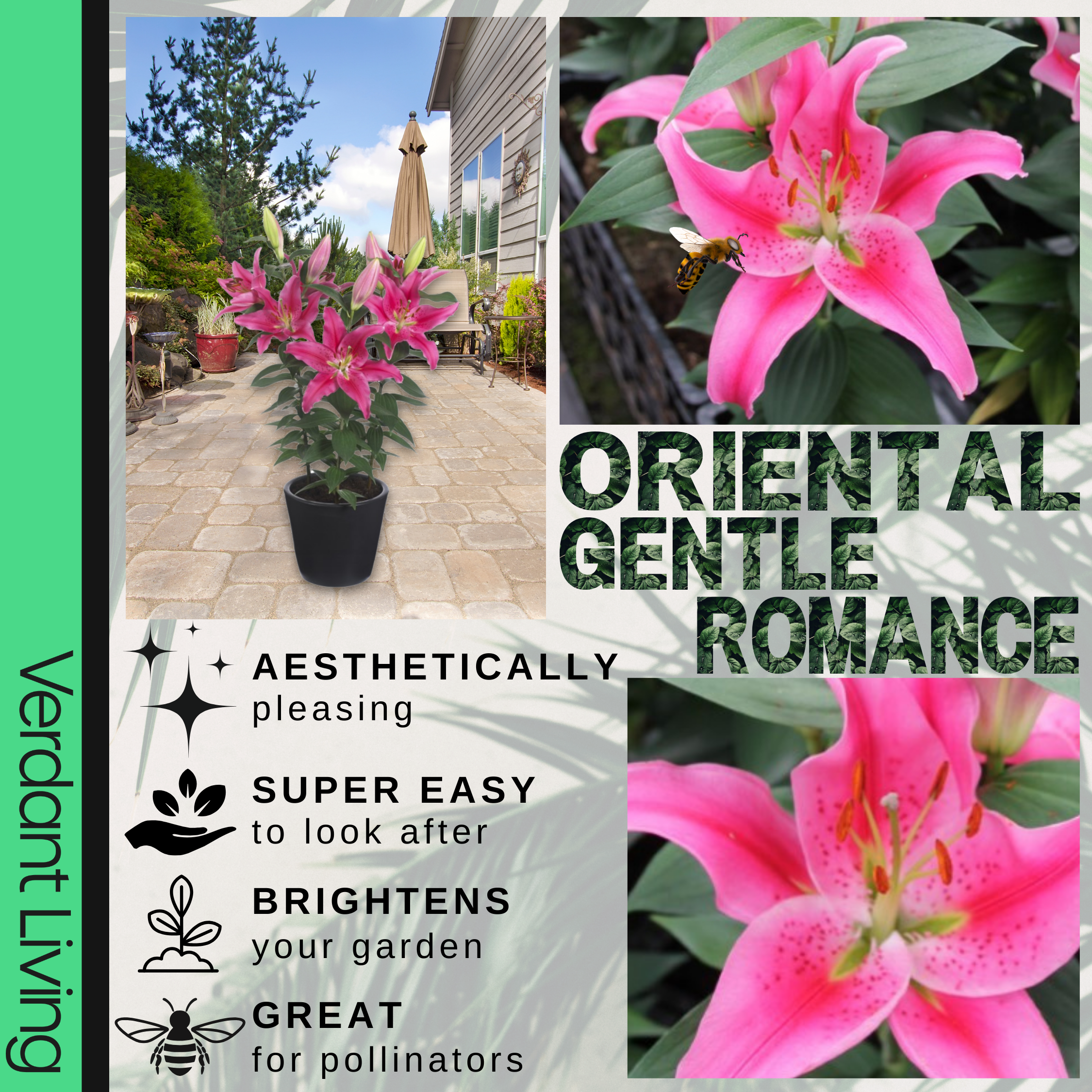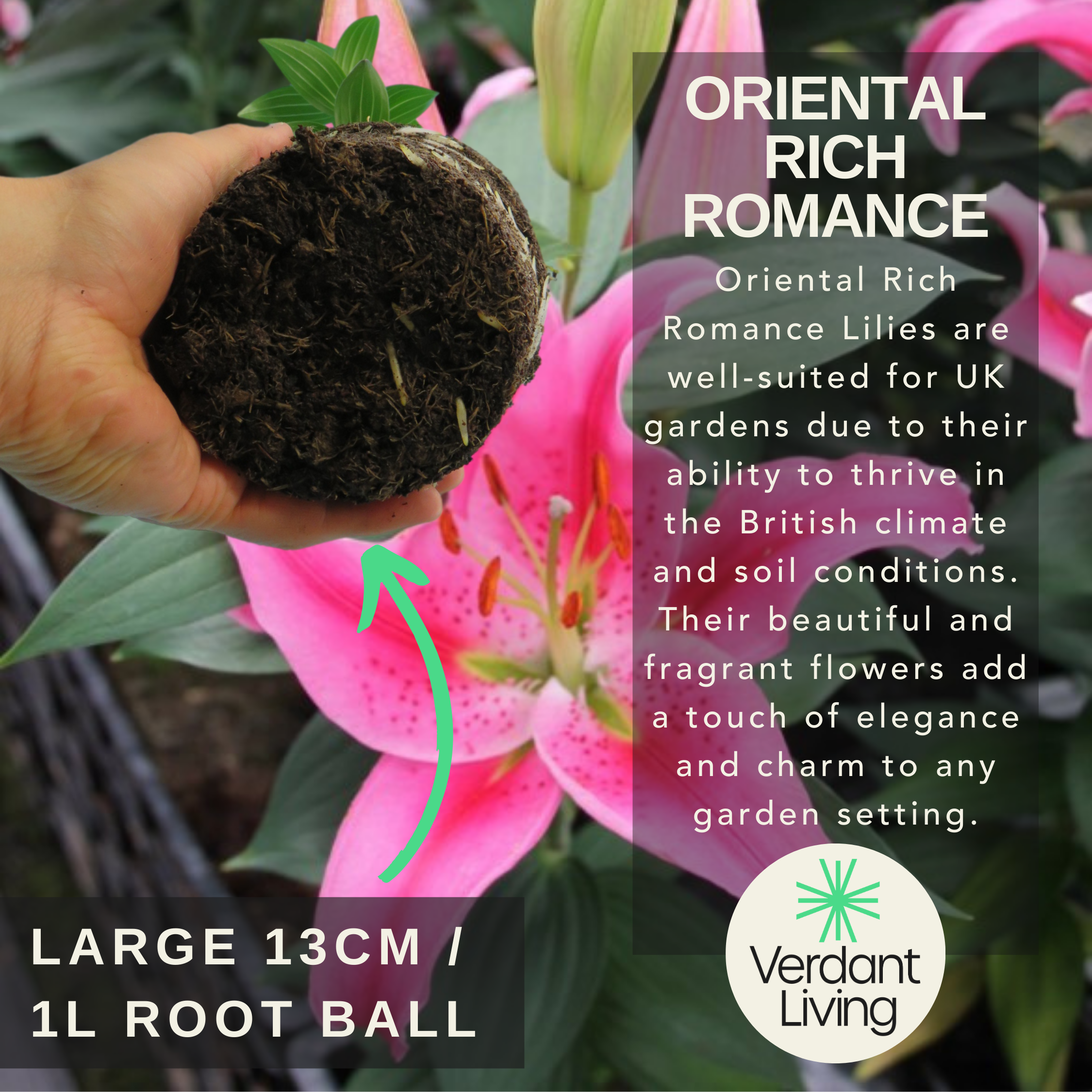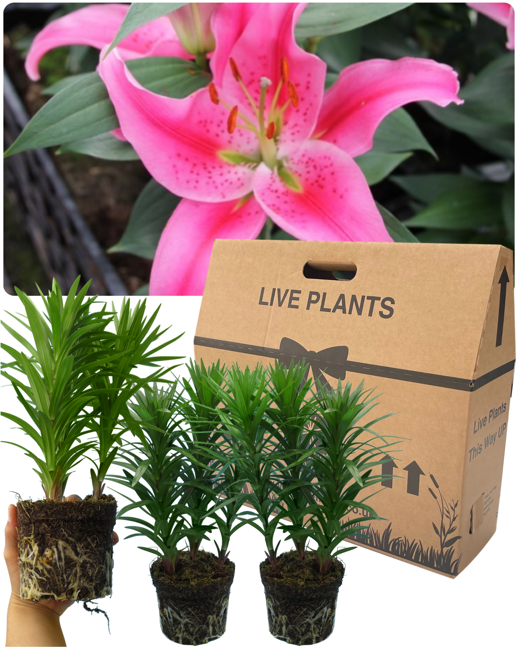 Create a fragrant paradise with our Oriental ‘Romance’ Garden Lily collection. Each pot contains three vibrant lilies, lovingly grown in Yorkshire in a 13cm, 1 litre pot, ensuring robust growth and stunning blooms. With three captivating colour options—Light Pink, Yellow and White & Dark Pink—and a delightful colour mix available, you can create your own floral garden masterpiece. These lilies boast trumpet-shaped flowers renowned for their fragrance and vivid hues, making them a delightful addition to any garden or floral arrangement. Elevate your garden with the timeless elegance of potted lilies. Add a pop of colour, fragrance, and charm to your outdoor space with our exquisite collection. Order now and embark on a journey of floral delight!