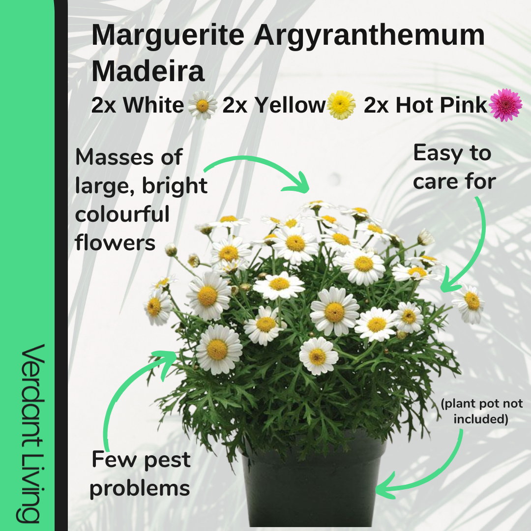 Marguerite Argyranthemum Madeira, White, Hot Pink,Yellow