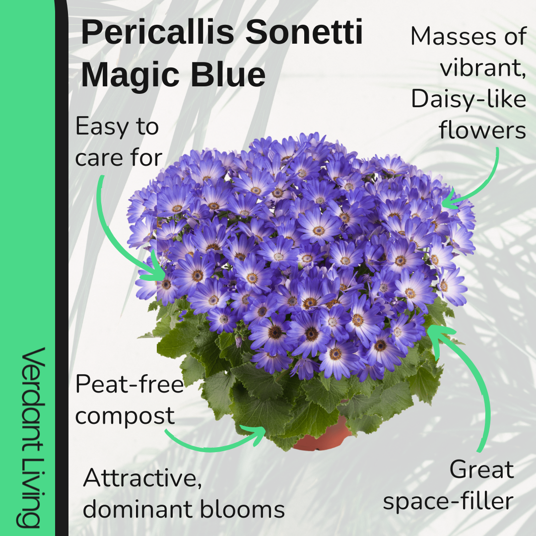 Transform your outdoor space with vibrant Senetti plants boasting large, garden-ready blooms and lush foliage, adding an instant pop of colour and charm. Enjoy the beauty of the dominant blooms, standing out in any garden setting with impressive resilience against varying weather conditions. Senetti plants will be your summer companions, offering continuous blooming throughout the early season, ensuring a colourful paradise.