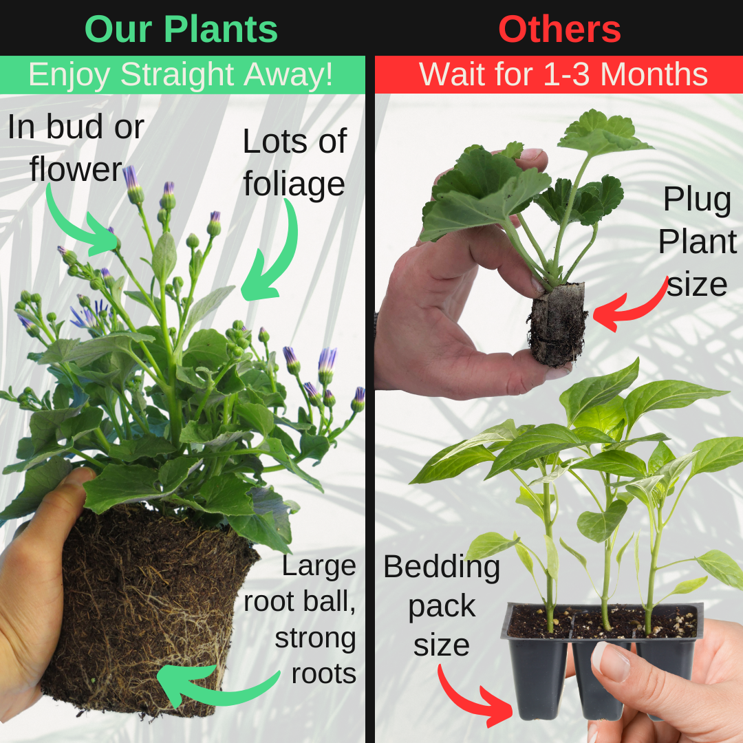 Transform your outdoor space with vibrant Senetti plants boasting large, garden-ready blooms and lush foliage, adding an instant pop of colour and charm. Enjoy the beauty of the dominant blooms, standing out in any garden setting with impressive resilience against varying weather conditions. Senetti plants will be your summer companions, offering continuous blooming throughout the early season, ensuring a colourful paradise.
