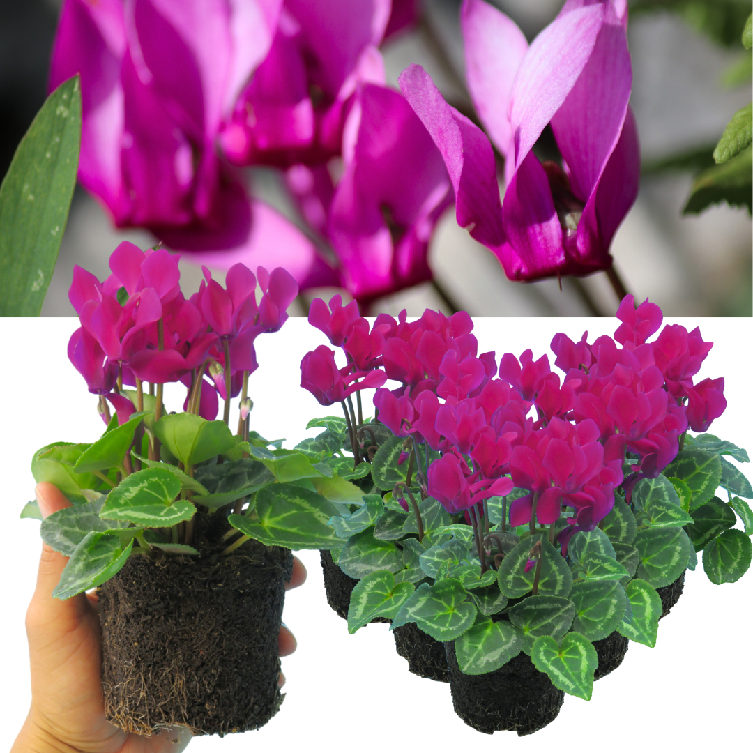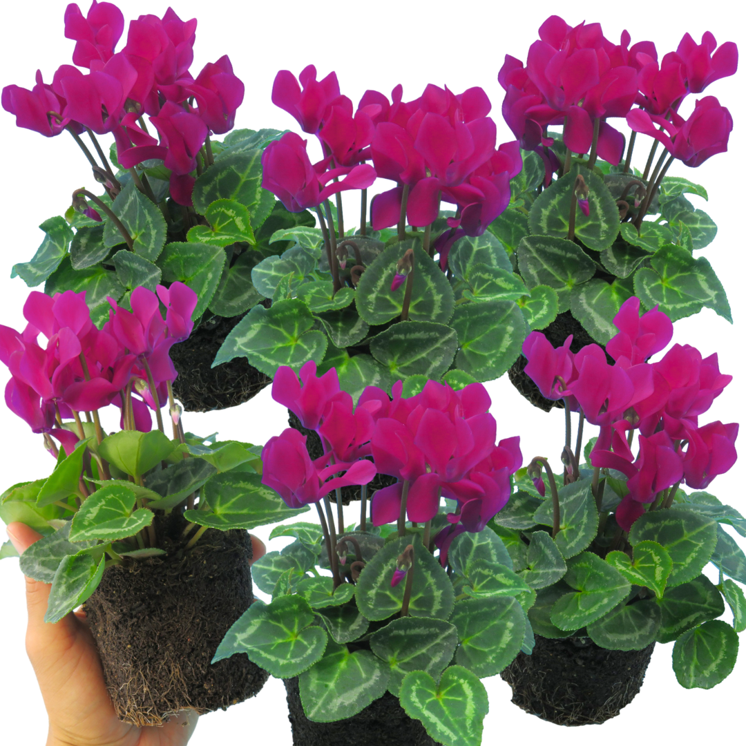 Our Cyclamen plants are a striking way to brighten autumn & winter displays with vivid blooms & decorative marbled foliage. Available in a variety of colours – including Mixed, White, Salmon, Deep Rose, Purple, Red & Scarlet – these semi-hardy, tuberous perennials thrive when many plants are dormant. Their blooms last for weeks, making them perfect for pots, baskets, beds & borders, while their neat habit suits patios, doorsteps & indoor displays.