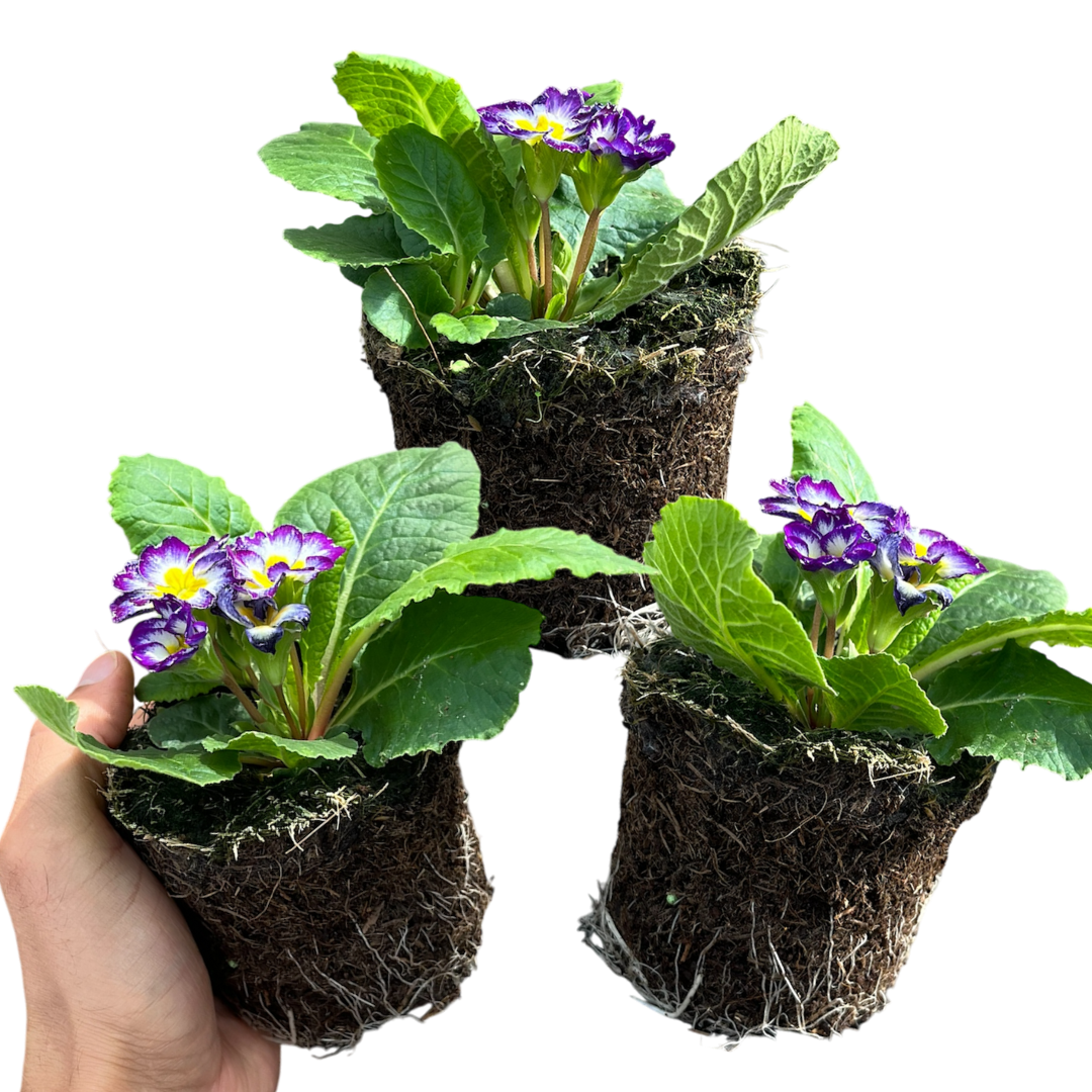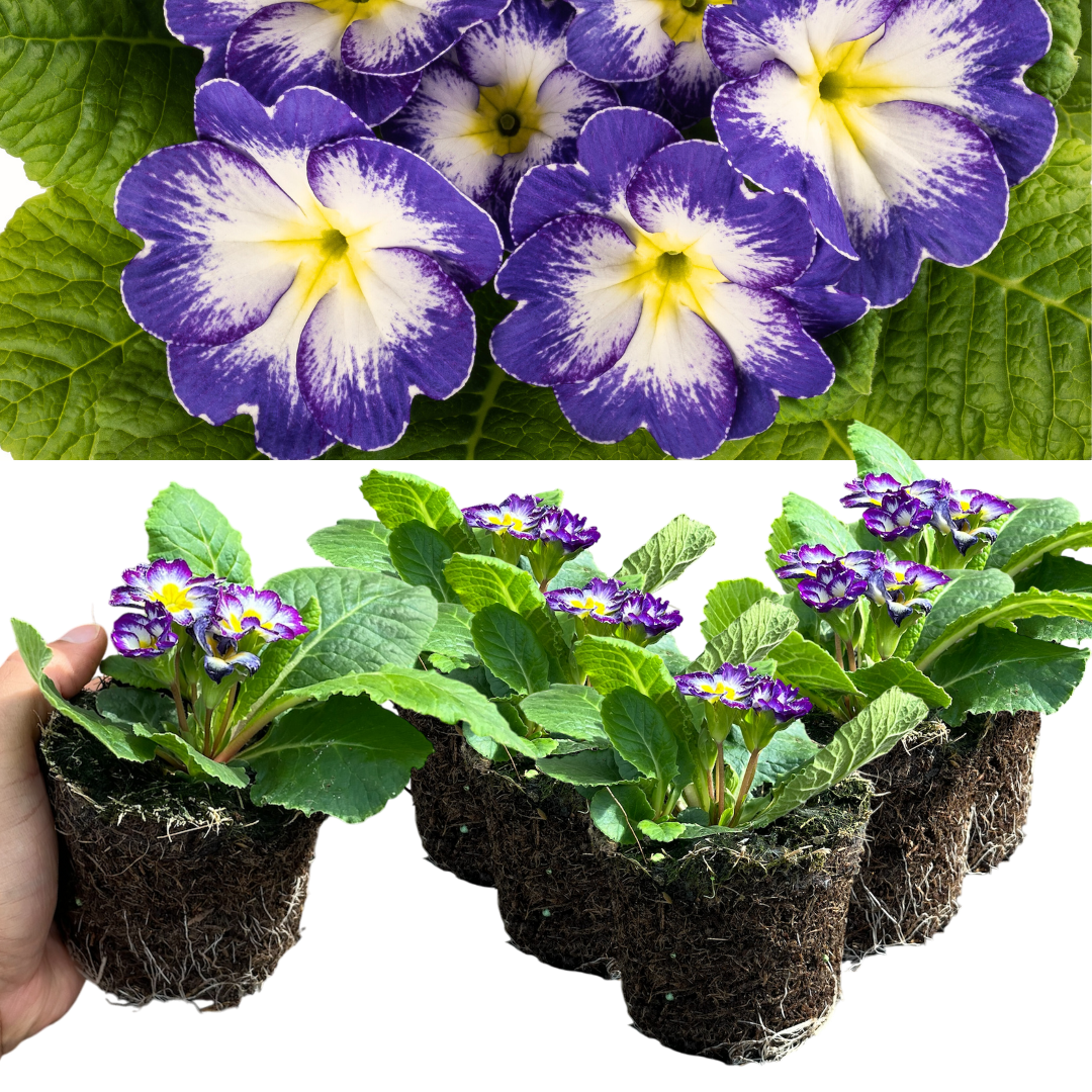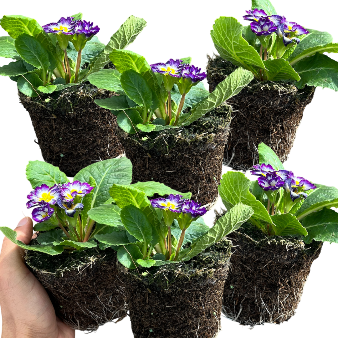 Primroses are a timeless garden favourite—bringing bold, cheerful colour to beds, borders, pots, and baskets during the cooler months when many plants are still dormant. Available in a stunning choice of varieties—Yellow, Appleblossom, Blue Bicolour, Purple, Orange, White, Red, Pink, and our Growers Mixed Selection—each variety produces clusters of delicate, velvety blooms in vibrant single shades or charming multi-toned patterns, all set against neat rosettes of lush green foliage.