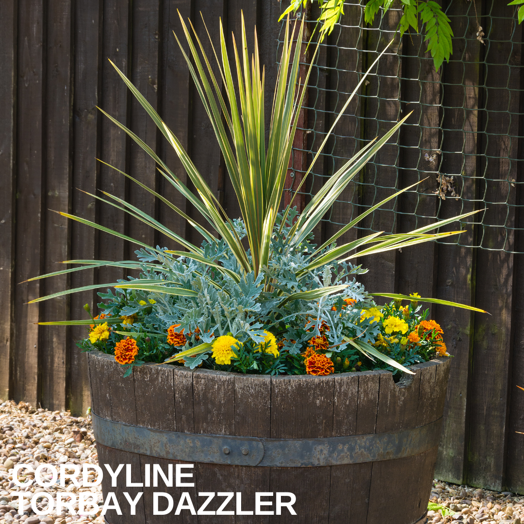 Our Cordyline Collection brings together three standout varieties—Red Star, Charlie Boy & Torbay Dazzler—each chosen for its striking foliage, strong structure, and year-round appeal. With their upright, sword-like leaves in shades of deep burgundy, apricot-pink, and variegated green, these evergreen perennials create instant impact in borders, containers, or patio pots. Whether used as individual features or layered into mixed planting schemes, Cordylines hold their shape and colour through every season.