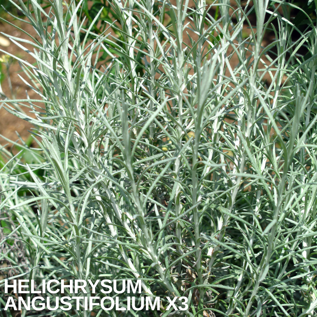 You can choose from a set of 3 or a set of 6 large garden-ready curry plants. Helichrysum angustifolium is a compact evergreen subshrub with soft, silver-grey leaves that release a strong curry-like scent when brushed or warmed by the sun. Reaching around 60 cm tall, it forms neat, mounded clumps topped by clusters of small, golden everlasting flowers in summer. While not the same as true curry leaves (Murraya koenigii), its foliage can be infused lightly in oils, vinegars, stews or soups for a subtle savoury aroma. Perfect for herb gardens, Mediterranean borders, patio containers & gravel beds where texture, fragrance & light movement are appreciated.