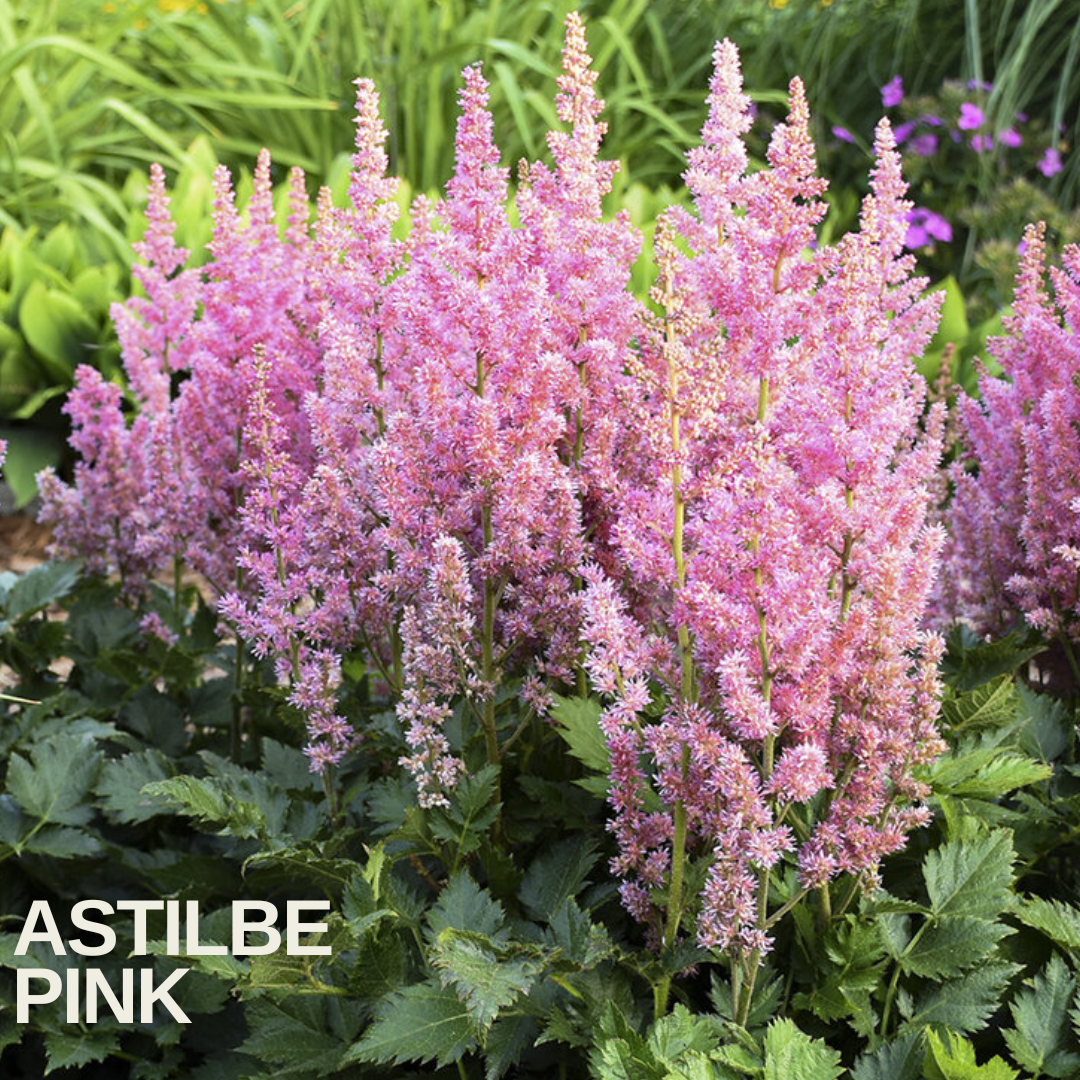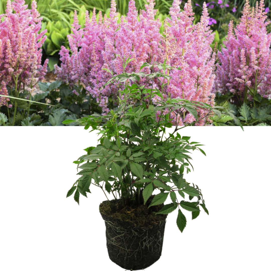 Each variety in this collection delivers feathery flower plumes in pink, white or red, rising elegantly above finely cut, fern-like foliage. These upright, clump-forming perennials thrive in damp, shaded spots—perfect for underplanting trees, lining borders or softening the edges of ponds & paths. Long-lasting blooms, attractive foliage & upright structure make them an ideal choice for gardeners looking to add depth & softness to difficult areas. Loved by pollinators & garden designers alike.
